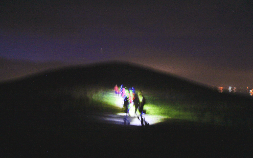 On Sat 6 November, a crowd of 30 people from across Carlow and beyond braved the cold and armed with torches followed artist-musician Tom Duffy with his drum – covered in blue disco lights – up Slieve Bawn on Mount Leinster. Forming a shining circle with their torches, the group gathered for a few minutes of reflection led by Carlow-based artist Paola Catizone as part of the official COP26 Coalition #GlobalDayofAction.