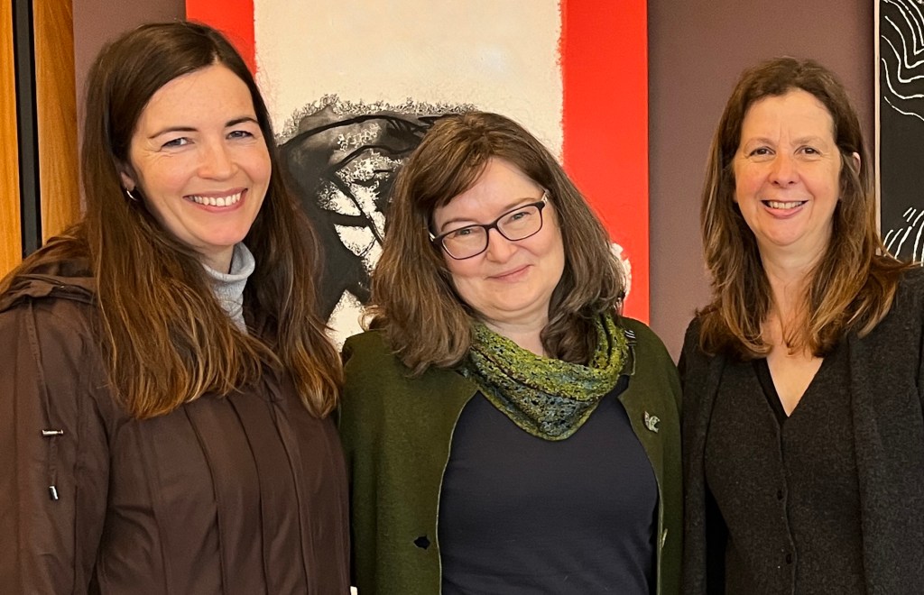 Director of Creative Ireland Wexford, Elizabeth Howard with Dr Cathy Fitzgerald and facilitator, eco-poet and writer, Grace Wells after their in-person ecoliteracy, Earth Charter and values-based learning for Wexford Local Authority Staff with responsibility for Climate Action, December 2024.